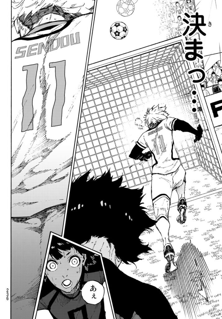 ブルーロック第99話では、試合の駆け引きがさらに激化し、イサギが相手の動きを読みながら最適なプレーを模索する姿が描かれる。カイザーや凛との心理戦も続き、次の展開への布石が敷かれる回となっている。 ブルーロック第98話 | ブルーロック第100話