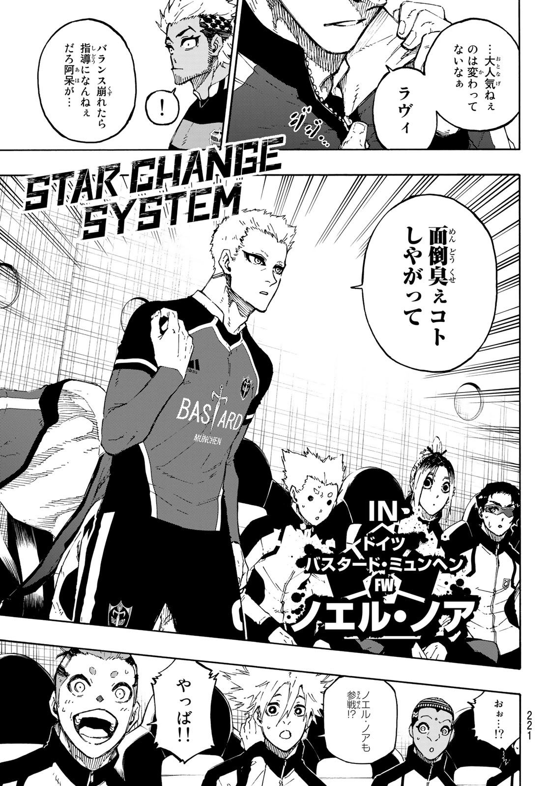 ブルーロック第241話 では、イサギが試合中の状況を冷静に分析し、次の一手を模索する姿が描かれる。凛やカイザーとの心理戦が本格化し、フィールド上の緊張感がさらに高まる回となっている。 ブルーロック第240話 | ブルーロック第242話