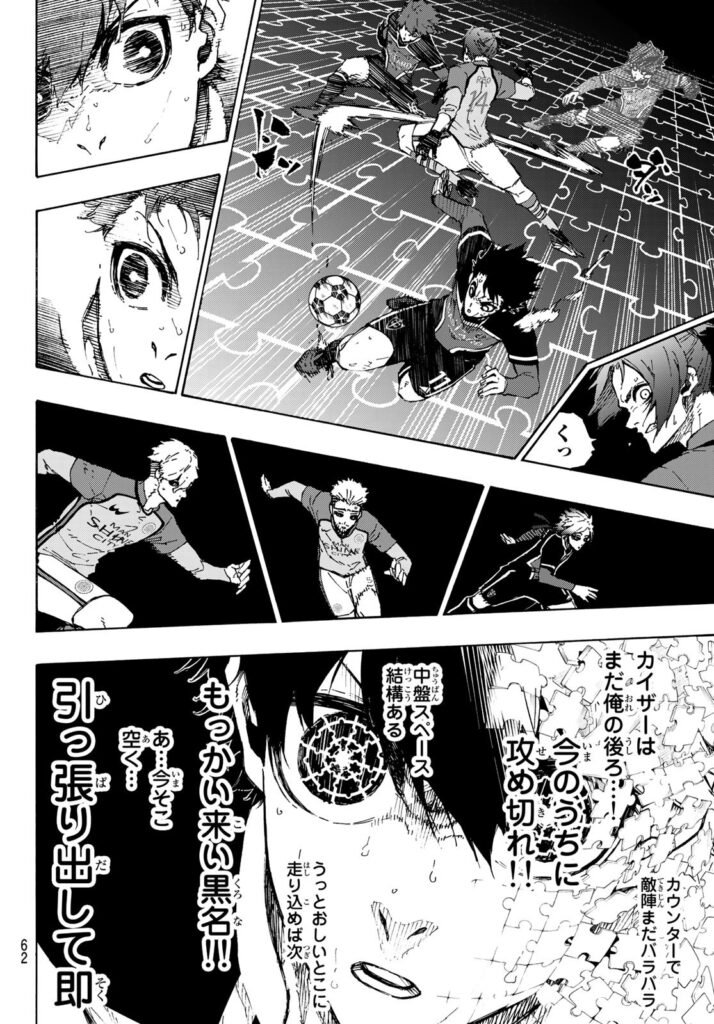 ブルーロック第226話 では、イサギが試合の流れを分析し、自分の動きでチームに有利な状況を作ろうと奮闘する姿が描かれる。凛やカイザーとの駆け引きもさらに激化し、フィールド上の緊張感が高まる回となっている。 ブルーロック第225話 | ブルーロック第227話