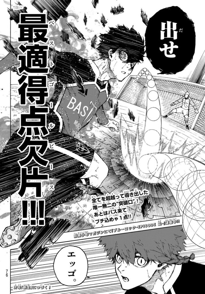 ブルーロック第78話では、試合が白熱する中、イサギがフィールド全体を俯瞰しながら自分の武器を活かす最適なプレーを模索する姿が描かれる。ライバルたちの動きも激しくなり、次の展開への布石が敷かれる回となっている。 ブルーロック第77話 | ブルーロック第79話