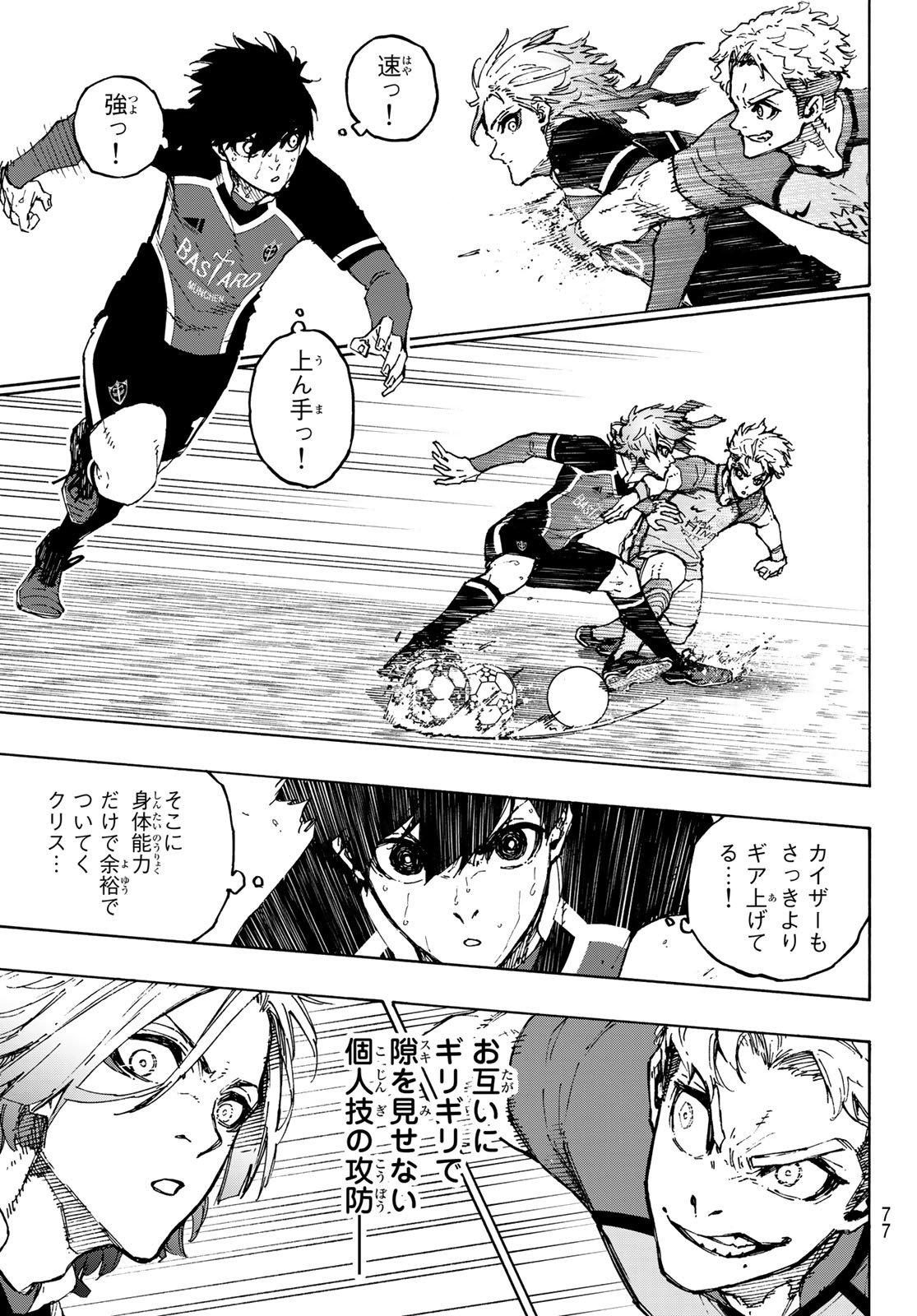 ブルーロック第78話では、試合が白熱する中、イサギがフィールド全体を俯瞰しながら自分の武器を活かす最適なプレーを模索する姿が描かれる。ライバルたちの動きも激しくなり、次の展開への布石が敷かれる回となっている。 ブルーロック第77話 | ブルーロック第79話