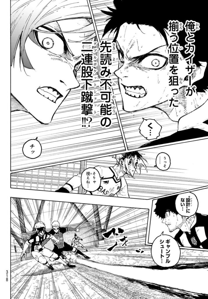 ブルーロック第228話 では、イサギが試合の状況を瞬時に読み取り、最も効果的なポジションを探しながら攻撃の起点になろうと動き出す。カイザーや凛との駆け引きもさらに複雑化し、プレッシャーの高まる中でイサギの判断力が試される回となっている。