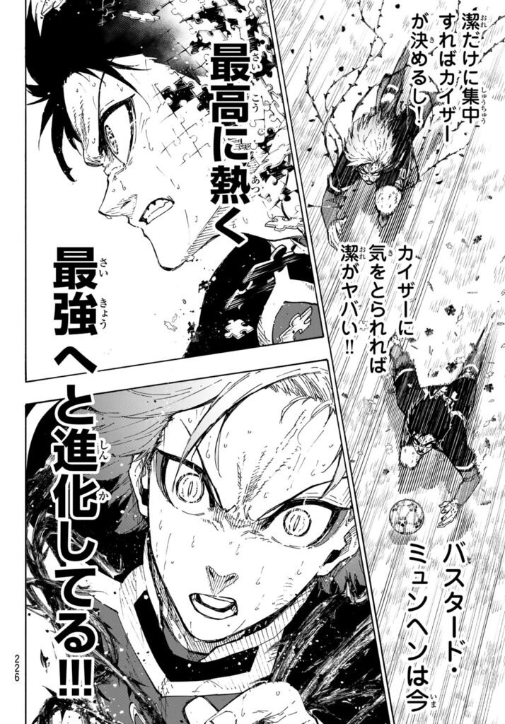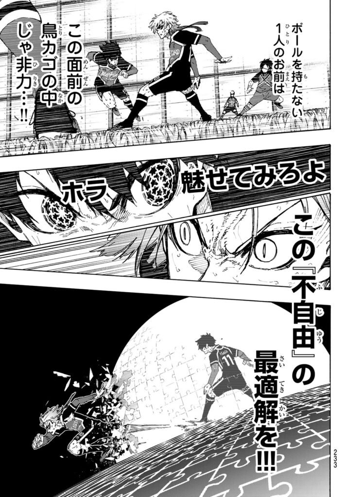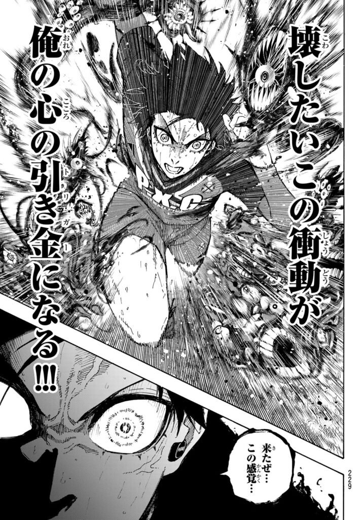 ブルーロック第262話では、日本代表チームが次の試合に向けて細かな戦術確認と個々の動きの調整を進める様子が描かれる。イサギは自分の判断やポジショニングを見直し、より効果的なプレーを目指して磨きをかける。リントシとの連携も少しずつ安定し、チーム全体の士気と一体感が高まっていく回となっている。 ブルーロック第261話 | ブルーロック第263話